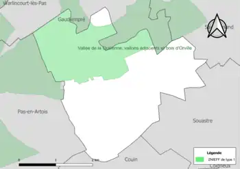 Le territoire communal comprend une ZNIEFF de type 1[Note 2] : la vallée de la Quillienne, ses vallons adjacents et bois d'Orville, d’une superficie de 2 143 hectares et d'une altitude variant de 65 à 154 mètres. Cette vallée associe des influences thermophiles dans les lisières et sur les pelouses et un caractère psychrophile au niveau des forêts de ravins. Une partie du site est occupée par l’agriculture intensive[10].