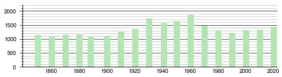 La même année, la commune compte 703 hommes pour 730 femmes, soit un taux de 47,2 % d'hommes, inférieur à celui du canton (48,4 %)[13].