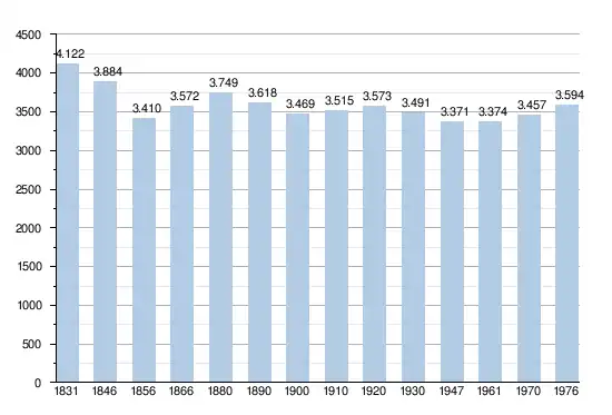 En tenant compte des anciennes communes entraînées dans la fusion de communes de 1977, on peut dresser l'évolution suivante[4] :
