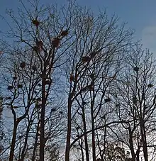 Les héronnières sont habitées par une seule espèce (héronnière monospécifique) ou par plusieurs espèces (héronnière mixte), et peuvent regrouper des centaines d'individus[2].