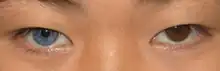 Ce trait fut souvent donné à David Bowie, à tort : s'il semblait avoir un œil noir et un œil bleu, c'est que son œil gauche avait subi une paralysie à la suite d'une blessure, et était en mydriase permanente (caractéristique incluse dans le terme de l'anisocorie et à ne pas confondre avec le myosis). Cette blessure à l'œil, donnant l'impression d'un œil gauche de couleur noire due à l'augmentation de la pupille de ce dernier, aurait été causée par un coup de poing donné par un camarade de classe lorsqu'il était jeune[9].