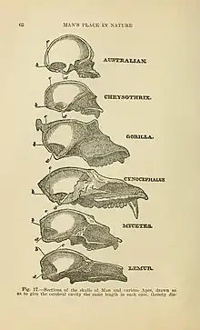 Le crâne a été une des structures visées pour tenter de prouver que l'Homme serait néoténique. Selon l'hypothèse, il serait le résultat d’un ralentissement dans le développement qui expliquerait pourquoi le crâne d’un humain adulte aurait l’apparence d’un crâne de singe juvénile. Or, les changements qui ont été appliqués au cours de l’évolution sur le crâne humain ne sont pas dus à des ralentissements (néoténie), comme le suggère cette théorie, mais plutôt à un amalgame de processus hétérochroniques dont la néoténie ne serait même pas dominante. Des recherches suggèrent en effet que «la forme arrondie du crâne juvénile et la position inférieure du trou occipital, se maintenant jusqu’au stade adulte chez l’Homme, sont vraisemblablement à rapporter à un processus [de progenèse]» (Chaline et al., 1998, p. 297). La progenèse serait également derrière le fait que l’Homme n’a pas, contrairement à plusieurs singes dont notamment le gorille, de bourrelet sus-orbitaire, de canines en croc ou de muscles masticateurs prépondérants. La conception que le développement du crâne se fait par néoténie passe aussi à côté du fait que le développement neuronal au sein même du crâne a subi des changements hypermorphiques au cours de l’évolution. Finalement, certains autres aspects du crâne humain se sont différentiés de ceux de nos ancêtres par post-déplacement[14].