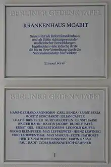 L'hôpital de Moabit est un hôpital du quartier berlinois de Moabit. Il est créé à la fin du XIXe siècle en tant que centre d'épidémies pour Berlin, mais se transforme rapidement en hôpital spécialisé. Dans les années 1920, il est l'hôpital le plus important hôpital de Berlin après la Charité. Après la reprise de l'hôpital par des médecins nationaux-socialistes et les importantes destructions des bâtiments pendant la Seconde Guerre mondiale, l'hôpital perd sa réputation médicale. D'importants travaux de reconstruction et de transformation suivent certes, mais l'hôpital de Moabit est néanmoins fermé en octobre 2001 dans le cadre de mesures d'économie.
