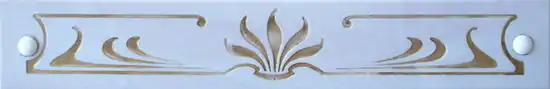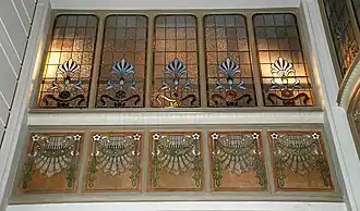 ![]() Fleuron en stuc et vitrail surmontant la porte du Museum Café |