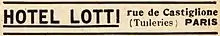L'hôtel Lotti apparaît dans le roman de Patrick Modiano Quartier perdu, publié en 1985. C'est là que descend le personnage narrateur du récit, un auteur de romans policiers du nom d'Ambrose Guise, 20 ans après avoir quitté la capitale (et sa véritable identité...) pour des raisons qui ne seront dévoilées qu'à la fin du roman.