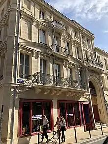 - Plaque descriptive apposée sur le trottoir par la Mairie de Bordeaux.
