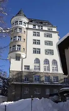 - (de) Cet article est partiellement ou en totalité issu de l’article de Wikipédia en allemand intitulé « Hotel Waldhaus (Sils) » (voir la liste des auteurs).