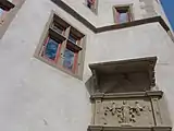 L’architecture est de style Renaissance et le bâtiment se caractérise notamment par ses hauts pignons à volutes, sa tourelle polygonale accueillant un escalier à vis, sa porte richement décorée, ainsi que ses fenêtres portant des traces de décors peints[6].