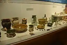 • vaisselle culinaire : pots et pots ansés, pot tripode, fragments de caquelons, jattes ansées, couvercles en céramique, passoire, lèchefrite, ustensiles de cuisine,