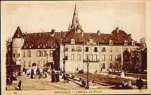 Le 22 février 1867, une délibération de la municipalité de Jean-Thomas Vendre décide d'affecter au premier étage de l'ancien hôtel de préfecture, différents services communaux. Le 15 mai 1867, un avis du maire informe les grenoblois qu'à partir du lundi 20 mai 1867, les bureaux de la Mairie, celui de l'octroi, ceux de l'Architecture, et ceux de la voirie municipale sont établis au premier étage dans les anciens locaux de la préfecture[16]. L'ancien Hôtel de Lesdiguières servira désormais d'Hôtel de ville jusqu'en 1967 avec une vaste salle des délibérations au premier étage et une salle des mariages au rez-de-chaussée.