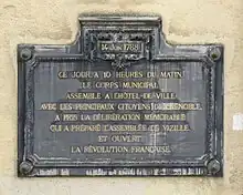 En 1888, sous la magistrature d'Auguste Gaché, et dans le cadre du déplacement dans les Alpes du président Sadi Carnot, une fête commémorative des événements révolutionnaires de 1788 est organisée le 20 juillet en sa présence[23]. Durant la soirée, après un banquet à l'hôtel de préfecture et avant un feu d'artifice sur la Bastille, une plaque monumentale est inaugurée à la lueur des torches sur la façade de l'hôtel de Lesdiguières, mentionnant les événements révolutionnaires de l'été 1788[24].
