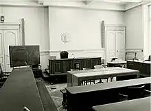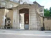 L'année suivante, une autre salle est offerte aux avocats de la ville afin d'installer une bibliothèque publique ouverte le 18 juillet 1748. À la fin de cette année, l'Intendant Pierre Jean François de la Porte fait part au Premier consul de son intention d'ouvrir un accès dans le mur qui longe la rue du Quai (actuelle rue Hector Berlioz) mais sans solliciter d'autorisation. Dans les semaines suivantes, l'Intendant fait appel à l'ingénieur Rolland qui perce le portail encore utilisé de nos jours dans un encadrement en pierre blanche de Sassenage[12]. Mais les syndics de la noblesse adressent une lettre de protestation à l'Intendant en lui rappelant qu'aucun de ses prédécesseurs n'avait entrepris de tels travaux dans cet hôtel et que la réalisation de cette dépense de luxe accentuerait le mécontentement des habitants dans une période économiquement difficile. Finalement, l'inspirateur de la lettre M. de Lemps reçoit une lettre de cachet un mois plus tard, qui le destitue de ses fonctions et lui interdit à l'avenir de s'occuper des affaires de la ville.