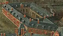 L'hôtel a été relié au palais par une arche à l'aile nord de la cour du Cheval Blanc[4]. Il s'agit alors d'un pont en pans de bois. Celui-ci est démoli durant la Révolution[5].