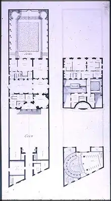 Au–dessus de la porte d’entrée se trouvait une salle de spectacle, au plafond peint par Taraval, peintre du roi. Aménagée pour contenir, au parterre ou dans les loges ouvertes ou grillées, 500 personnes, c’était un chef-d’œuvre du genre qui faisait concurrence à l'Opéra.