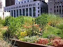 En 2001, selon la volonté de Richard M. Daley (maire de la ville de 1989 à 2011), des jardins sur le toit d'une superficie de 3 600 m2 ont été réalisés et ont servi de projet pilote pour évaluer l'impact des toitures végétales[7],[8] sur l'effet d'îlot de chaleur dans les zones urbaines, l'écoulement des eaux de pluie et l'efficacité de différents types de toits verts et d'espèces végétales pour le climat de Chicago.