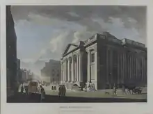 La rue du Parlement avait été tracée en 1753[1], fournissant une continuation de la rue Capel sur la rive nord de la Liffey, à travers le pont Essex nouvellement élargi [2]. Construit à l'origine sous le nom de Royal Exchange, la structure a été conçue par Thomas Cooley, qui avait remporté un concours de conception pour le projet entre 1768 et 1769 [3].