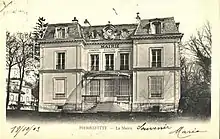 À cet endroit se trouvait une maison bourgeoise construite en 1856 qui fut acquise par la municipalité en 1901 afin d'y établir la mairie[2]. Cet édifice en pierre de taille était surmonté d'un toit à la Mansart couvert d'ardoise.