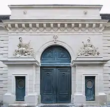 La façade est de style néoclassique. Le sculpteur Jean-Jacques Morgand (1756-1798) a réalisé les statues de Mars et de Minerve qui surmontent les guérites de la façade sur rue.