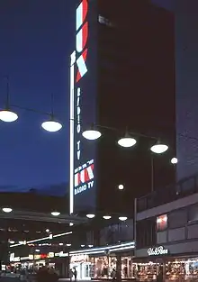 Au début de l'année 1960, Dux obtient l'autorisation d'installer une enseigne lumineuse géante sur le côté ouest du bâtiment no 1. Cette enseigne est dessinée par l'architecte de l'immeuble, David Helldén, et est fabriquée par la société Philips Neon. Elle se compose de plus d'un kilomètre de tubes de couleur rouge, blanche et bleue, et est alors la plus grande enseigne lumineuse d'Europe. Le , l'enseigne est allumée par miss Stockholm.