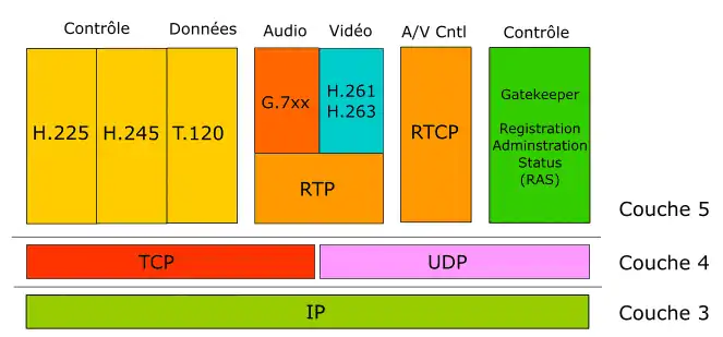 Pour le contrôle et la signalisation : H.225, H.245, Q.931, RTCP.