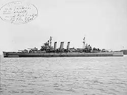 | Armement | 8 canons doubles 8 pouces de 203 mm 4 canons antiaériens de 4 pouces QF Mk V de 102 mm 2 mitrailleuses Vickers de 12,7 mm Mk.III 6 canons simples de 2 livres QF 2 tubes lance-torpilles quadruples de 21 pouces (533 mm) |