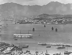 Le HMS Tamar (en) est un navire transport de troupes britannique de 3 650 tonnes construit en 1862[5] et lancé en 1863. Il se rend pour la première fois à Hong Kong en 1878 avec des équipages de secours, et revient une nouvelle fois en 1886[4]. Il arrive finalement à Victoria le [1]. Il reste stationné en permanence dans le port de 1897 à 1941, lorsqu'il est sabordé pendant la bataille de Hong Kong pour éviter d'être capturé par les forces impériales japonaises.