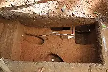 La forge est un bâtiment en pierre qui a été partiellement fouillé. On y a retrouvé un important ensemble d’objets de fer en relation avec cet atelier.