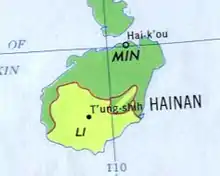 | Groupes ethniques | Hans (83 %) Li (16 %) Hmong (0,8 %) Zhuang (0,7 %) |