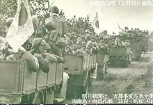 Le Japon, que la perspective d'une Chine unie inquiète, débarque en 1928 à Shanghai pour affaiblir les forces de Tchang Kaï-chek. Les forces japonaises occupent la Mandchourie en 1931 avant de mener des opérations de débarquement tout le long des côtes de la Chine en 1937, coupant les principales artères de ravitaillement et affaiblissant définitivement le pays. Dans le cadre de ces opérations, ils attaquent Hainan en août 1937 et occupent la bande côtière de l'île. En février 1939, Hainan, comme une grande partie de la Chine continentale, est complètement sous le joug des Japonais. Dans l’île la guérilla communiste harcèle l'occupant depuis des bases installées immédiatement derrière leurs lignes concentrées près de la côte tandis que l'armée du Kuomintang s'est retranchée dans les montagnes au centre de l'île. Un pacte de non agression est signé entre ces derniers et les Japonais alors que les communistes et le Kuomintang sont officiellement alliés contre le Japon. Deux chefs Li à la tête de 20 000 hommes mènent une guerre de harcèlement contre les troupes du Kuomintang retranchées dans la montagne des cinq doigts. Les actions de la guérilla obligent les Japonais à maintenir en permanence deux divisions dans l'île. Les occupants ont transformé celle-ci en camp d'entraînement pour les divisions qui se lancent à l'attaque de la Thaïlande et de la Birmanie. Les Japonais, en manque de matières premières, ouvrent une mine de fer à ciel ouvert à Shi Lu Shan qui fournit 2 millions de tonnes de minerai par an. Pour l'exporter vers le Japon, deux ports et une ligne de chemin de fer sont construits dans l'île. Après la défaite du Japon en 1945, les troupes du Kuomintang reprennent le contrôle de l'île[16].