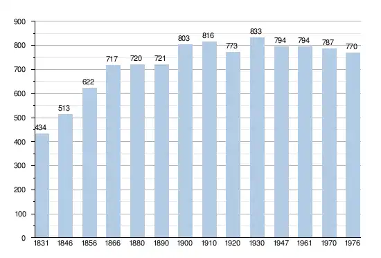 - Sources : INS, Rem. : 1831 jusqu'en 1970 = recensements, 1976 = nombre d'habitants au 31 décembre.