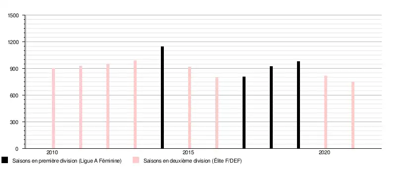 - La vraie capacité moyenne est 1 237 spectateurs mais un match a été joué à la salle Michel-Gloaguen (contre le RC Cannes).