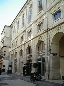 La rue du Vieux-Sextier fut ouverte, entre 1749 et 1754 par Jean-Baptiste Franque. L'idée de l'architecte avignonnais était de constituer dans cette nouvelle artère, donnant sur la place Pie, un grand centre d'approvisionnement de la ville avec boucherie, poissonnerie et triperie[3].