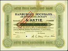 Action de la Hamburger Hochbahn AG en date du Decembre 1919