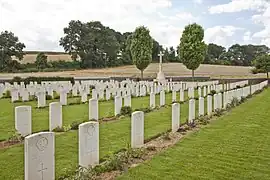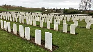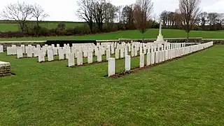 Il y a 493 victimes britanniques de la guerre 1914-18 commémorées sur ce site dont 79 sont non identifiés. Il y a également une tombe d'un soldat allemand