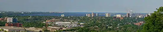 On peut noter que le climat de la basse-ville est en général beaucoup plus abrité et tempéré que sur « la montagne » (la haute-ville), où la saison agricole est plus courte et où on est plus vulnérables aux bourrasques de neige en hiver. Ce n'est guère inhabituel pour les résidents de la basse-ville de quitter leurs quartiers sans neige et de se faire surprendre, en arrivant en haute-ville, par une épaisse couche de neige fraîche. L'escarpement affecte également la météo estivale ; des inversions de température peuvent rendre le centre-ville beaucoup plus chaud, et souvent une inversion se combinera à la barrière physique de l'escarpement pour retenir le smog dans la région du centre-ville, réduisant parfois la visibilité à moins de 2 km.