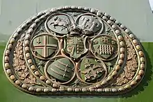 Aux extrémités du pont, en Barnes et Hammersmith, on se trouve un motif composé d'un relief de sept blasons. Le blason au centre est les armoiries royales du Royaume-Uni actuelles, couronnées avec la couronne royale. Les autres écus sont (de la gauche, dans le sens des aiguilles d'un montre): les armoiries de la Cité de Londres; les armoiries du Kent; les armoiries de Guildford; les armoiries historiques de la Cité de Westminster; les armoiries de Colchester; et les armoiries du Middlesex (dans leur forme originale, sans la couronne saxonne, qui était ajoutée plus tard pour les distinguer des armoiries de l'Essex).