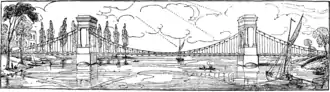 L'établissement d'un pont fut autorisée par une loi votée par le Parlement d'Angleterre en 1824 et la construction à proprement parler a commencé l'année suivante. C'était le premier pont suspendu de la Tamise et il a été conçu par Guillaume Tierney Clark.