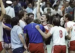 - En 1980, l'équipe féminine d'Union soviétique est la première à conserver son titre. Elle sera imitée en 1992 (sous le nom d'Équipe unifiée) par son homologue masculine puis par l'équipe de France masculine, vainqueur à Pekin en 2008 et à Londres en 2012.