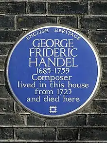 Haendel a élu domicile à Londres en 1712 et reçu la citoyenneté britannique en 1727. Haendel fut le premier locataire du 25 Brook Street, qu'il loua de 1723 jusqu'à sa mort en 1759. Presque toutes ses œuvres après 1723, parmi lesquelles bon nombre de ses opéras, oratorios et musiques de cérémonie les plus connus, ont été composées et partiellement répétées dans la maison, qui contenait une variété d'instruments à clavier, dont des clavecins, un clavicorde et un petit orgue de chambre.