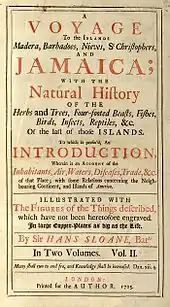Sloane est bientôt élu à la Royal Society et reçoit le concours de Thomas Sydenham dans son apprentissage de la médecine. En 1687, il devient membre de l'école de médecine. La même année, il part exercer en Jamaïque à la cour du duc d'Albemarle[2]. Mais celui-ci meurt peu après l'arrivée de Sloane : son séjour ne dura que quinze mois mais Sloane récolta tout de même près de 800 nouvelles espèces de plantes, la Jamaïque n'ayant été jamais étudiée auparavant. Il en publie le compte rendu en latin en 1696 et, plus tard, le récit de son voyage A Voyage to the islands Madera, Barbados, Nieves, St Christophers and Jamaica (1707 et 1725), en deux volumes illustrés de gravures noir et blanc[3],[4].