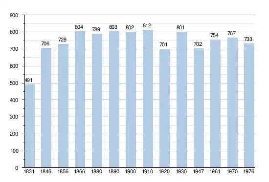 - Sources : INS, Rem. : 1831 jusqu'en 1970 = recensements, 1976 = nombre d'habitants au 31 décembre.