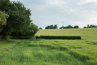 Ce cimetière, entièrement entouré d'une haie d'arbustes, a un plan rectangulaire de 25 m sur 15.