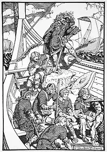 Harald Ier à gauche. Illustration du XIVe siècle. | |