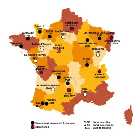 | Haras | Lieu | Région | Date d'ouverture | Date de fermeture |