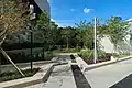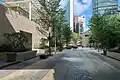 Rodney Street relie le United Center (à gauche) et Harcourt Garden (à droite). La rue au premier plan est Queensway (en) (2010).