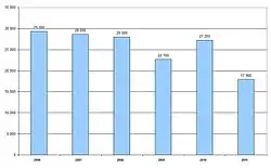 | 2009 | 2 (81,6) | 1 (40,8) | 3 (122,4) | 22 (897,6) | 50 (2 040,0) | 1 (40,8) | 253,0 (279) |
