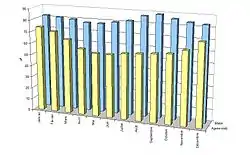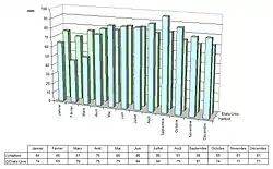 | Précipitations (mm) | 64 | 46 | 51 | 76 | 86 | 86 | 86 | 91 | 99 | 89 | 81 | 81 | 936 |
