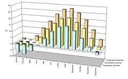 | Température moyenne (°C) | −3 | −4 | 0 | 5 | 12 | 17 | 21 | 22 | 19 | 15 | 8 | 2 | 10 |