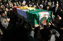 Il a été enterré à Téhéran. Le commandant du CGRI Mohammad Ali Jafari, le commandant de la Force Qods Qasem Soleimani et d'autres responsables iraniens ont assisté à ses funérailles[1].