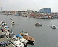 Le Smedasundet et l'île de Risøy avec en fond l'entreprise HMV.